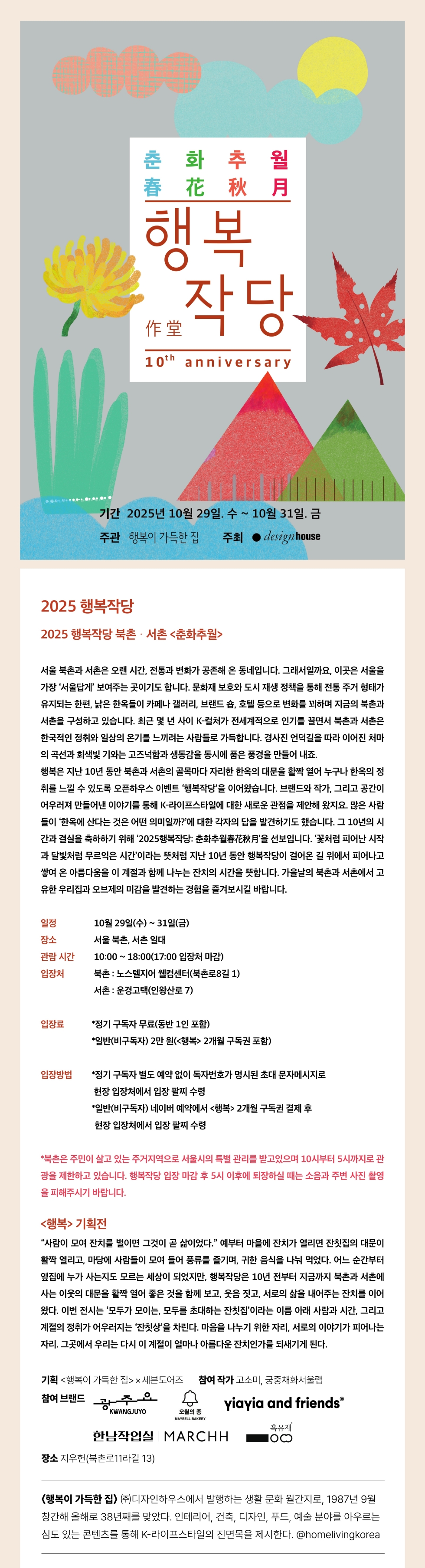 | 장소 | 서울 북촌, 서촌 일대 | 주최 | 행복이가득한집 |
