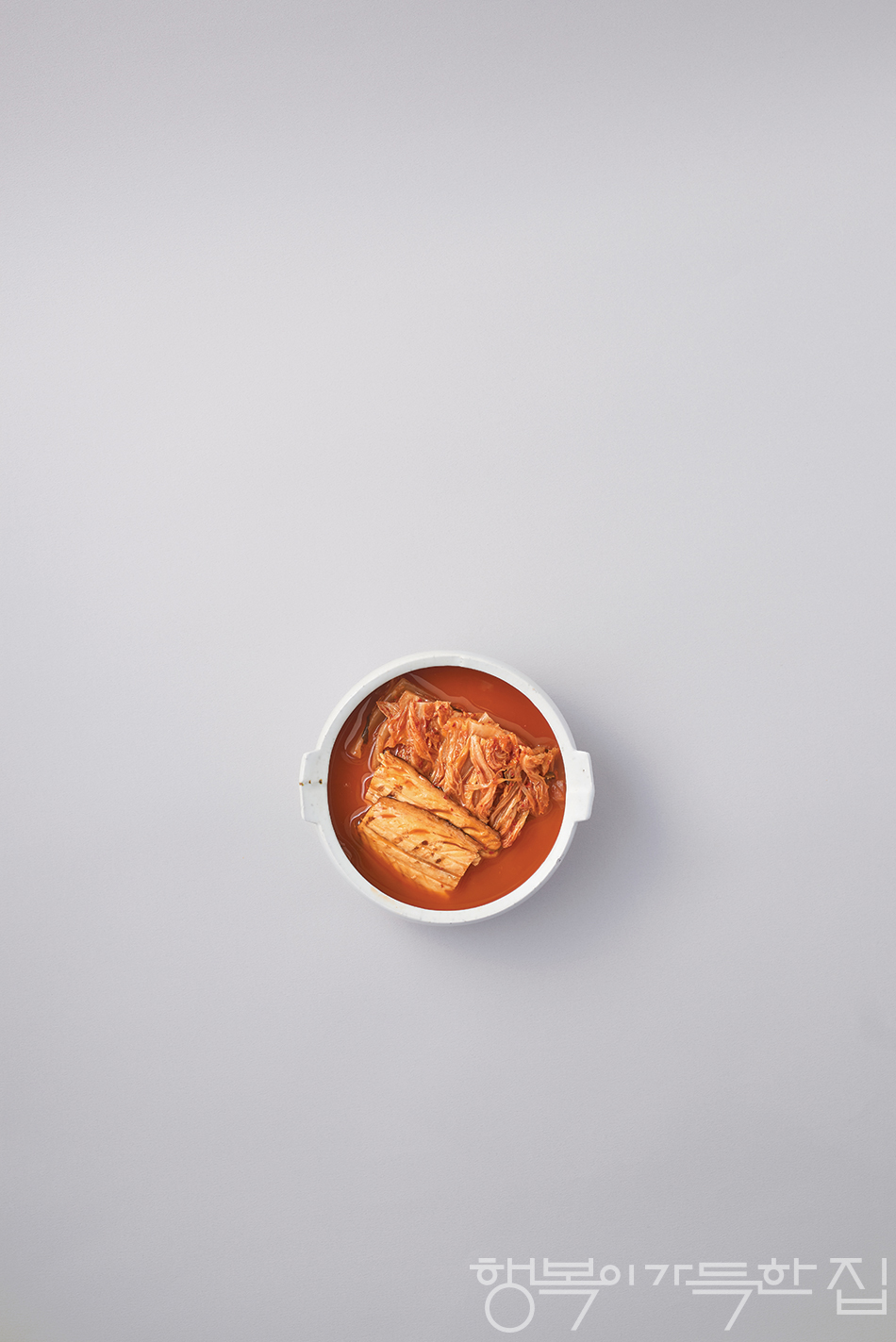 1 달군 냄비에 분사식 통들깨 들기름을 넉넉히 두르고 김치를 넣어 볶다가 설탕을 약간 뿌린다. 여기에 김치 국물을 붓고 끓이다가 국물이 거의 졸아들면 물을 붓고 30분 이상 푹 끓인다.