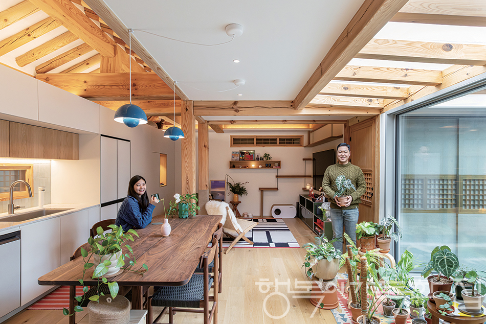 누군가의 집을 찾아가 이야기를 들을 때마다 하는 일이 있다. 이유를 묻는 것이다. ‘왜’라는 질문은 주어진 시간 안에 마주 앉은 사람의 성향을 알아내는 열쇠가 되기 때문이다. 금방이라도 먹구름이 비를 한바탕 쏟아낼 것 같은 12월의 어느 토요일, 다음 날 오전 푸껫행 비행기에 몸을 실을 예정인 김수영·이경한 부부의 삼청동 한옥에 갔을 때 처음 건넨 질문도 바로 ‘왜’였다. “신혼집을 한옥으로 택한 이유가 무엇이죠?” 답은 명료했다. “궁금했어요.”