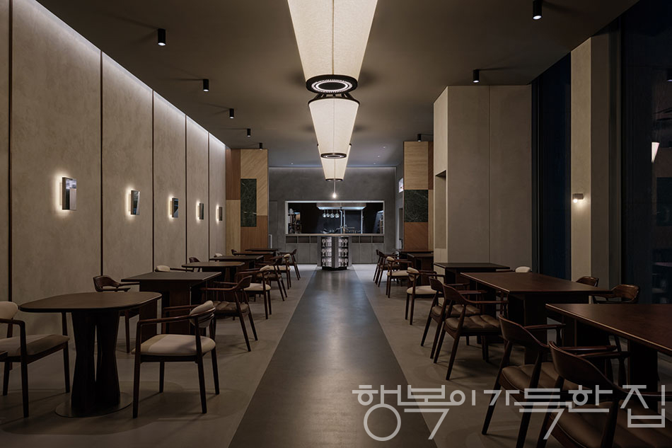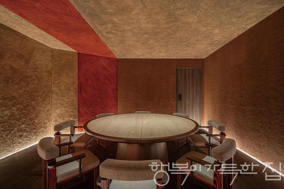 공간 역시 이 다섯 가지 키워드를 시각적으로 풀어냈다. 입구에는 발효 식재료 병을 디스플레이해 ‘발효’라는 키워드를 드러냈고, 옥빛 포인트와 베이지·그레이·황토 톤의 조합으로 차분하면서도 고급스러운 분위기를 연출했다. 또한 오픈 키친 구조로 설계해 조리 과정을 그대로 보여줌으로써 단순한 식사 공간이 아닌, 셰프가 선사하는 다이닝을 온전히 느낄 수 있도록 했다.