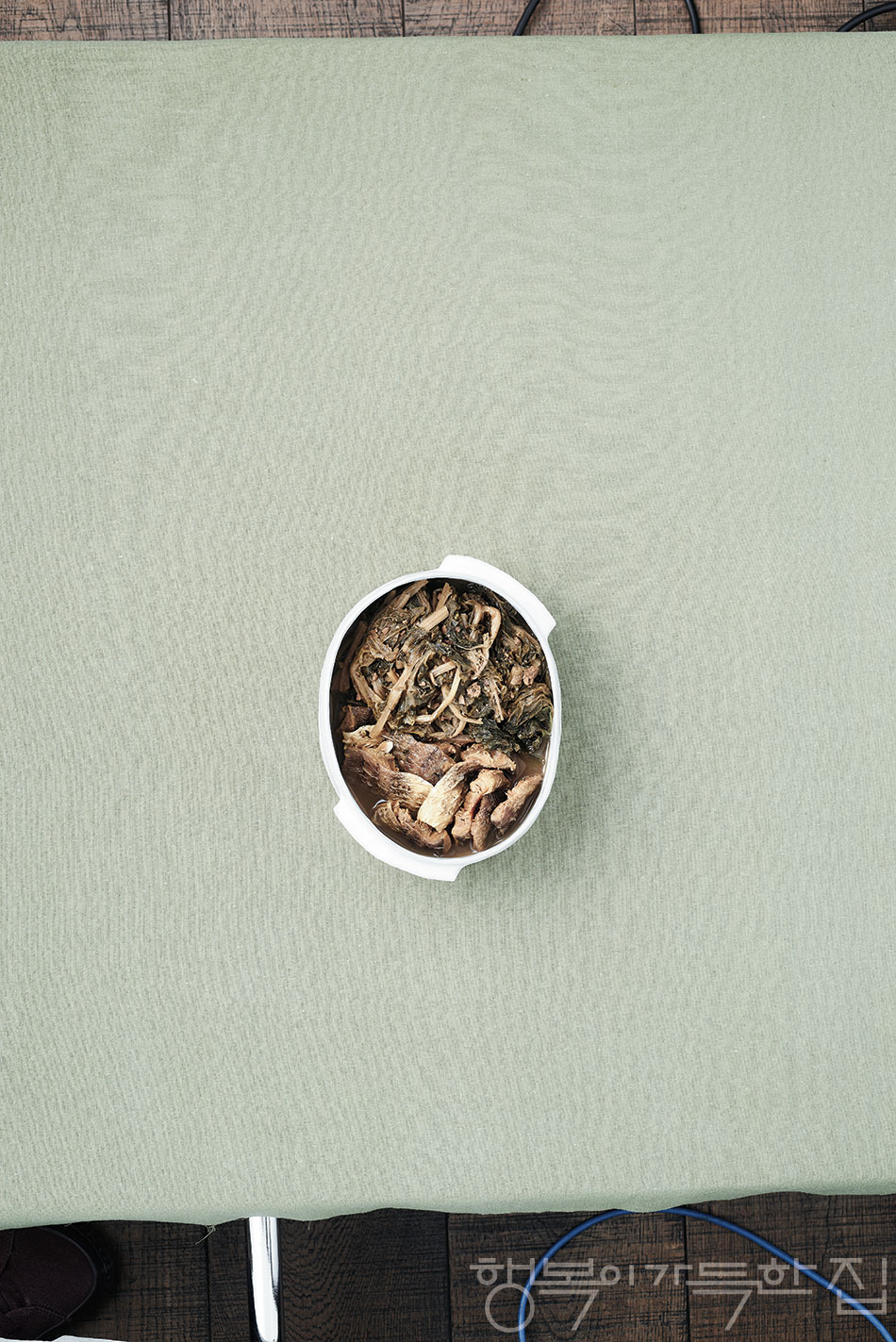 ⑤ 시래기를 8~10cm 길이로 썰어 그릇에 담고, 황태를 곁들인다.