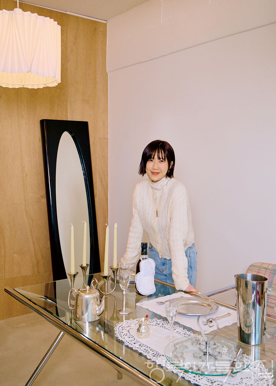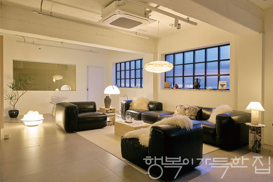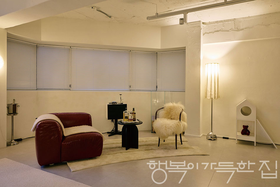 넉넉한 평수 덕분에 이곳은 친구들의 아지트가 되기도 하고, 때로는 행사가 열리는 공간으로 변모한다. 플루트 유리로 만든 창문 또한 이 곳의 특별한 요소다.
