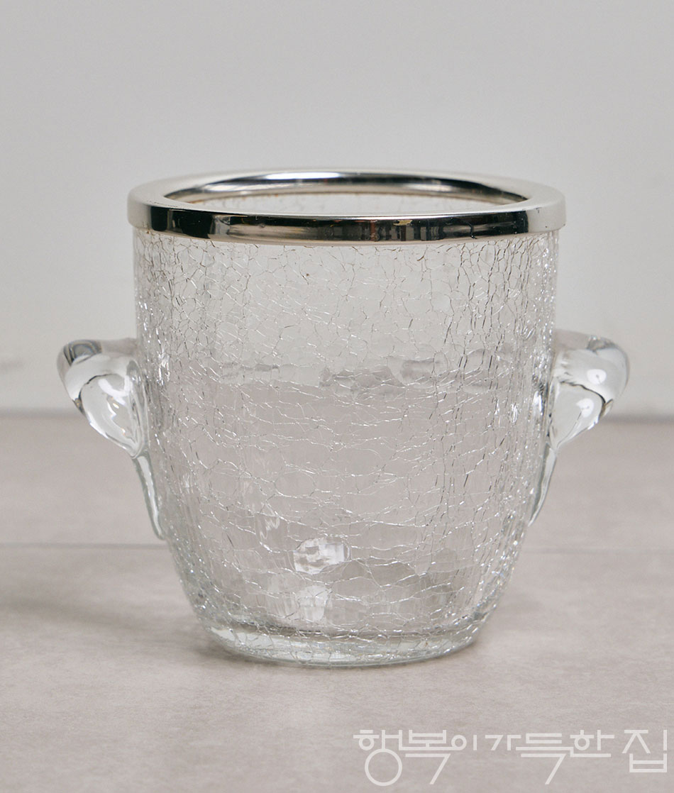 와인 버킷(Silver Plated&Crackle Glass ice Bucket C1950s) 개더링gathering을 즐기는 이들에게 와인 버킷은 모임의 무드를 완성하는 필수 아이템이다. 와인을 최적의 온도로 차갑게 유지해주는 기능적 역할은 물론, 테이블 옆이나 사이드보드에 놓인 모습만으로도 자리에 격조를 더한다.