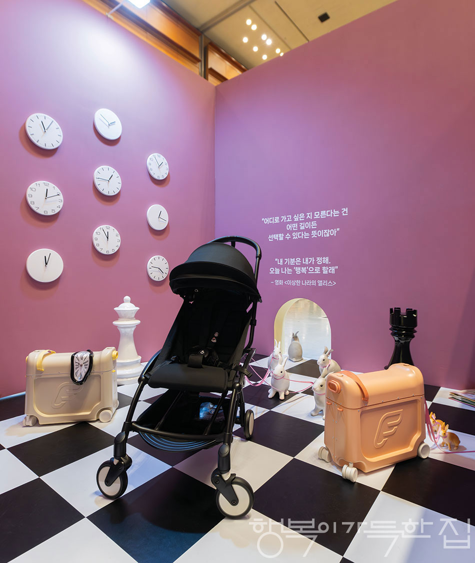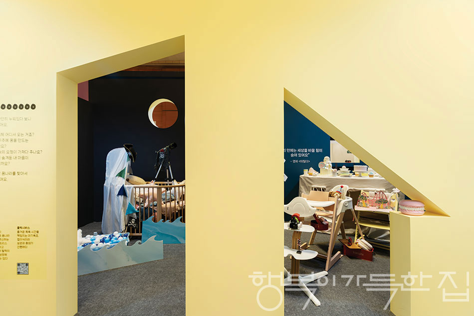 매해 새롭고 톡톡 튀는 부스와 형형색색의 가구로 코엑스 전시장에 활기를 더하는 키즈관 기획 전시 <아이가 자라는 집>. 육아 콘텐츠 미디어 맘앤앙팡이 기획·주관하는 이 전시는 “아이가 자라는 집에는 무엇이 필요할까?”라는 질문에서 출발해, 아이와 부모가 함께 살아가는 공간의 의미를 다양한 시선으로 풀어낸다. 프리미엄 유아용품 브랜드 스토케와 함께한 이번 전시는 ‘작은 아이들, 거대한 세계(Small Kids, Big World)’를 주제로 아이의 일상이 얼마나 넓은 세상으로 확장될 수 있는지 보여줬다. 현실과 상상을 자유롭게 오가는 순간에 주목하며, 아이의 세계를 키우는 일은 결국 가족이 함께 보내는 시간임을 전했다. 동화 속 장면을 오마주한 세 가지 테마 공간은 식사(Eating), 수면&목욕(Sleeping&Bath), 탐험(Exploring)이라는 일상의 순간을 상상 속 세계로 연결하고, 성장 과정에 늘 함께 하는 물건을 두 세계를 잇는 ‘탈 것’으로 변신시켰다.