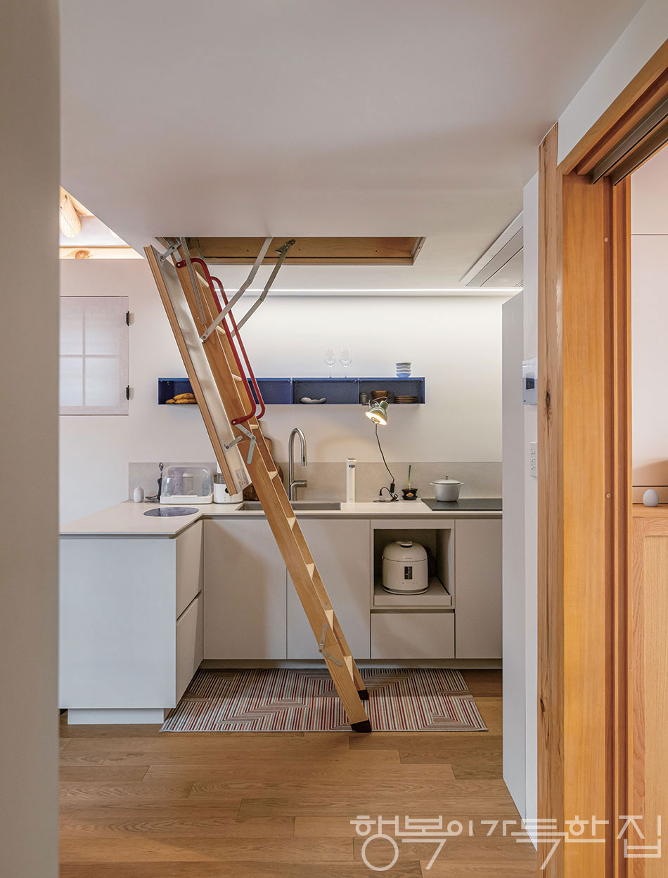 부엌 천장에는 부부의 여러 물건을 수납할 수 있는 창고가 숨어 있다.