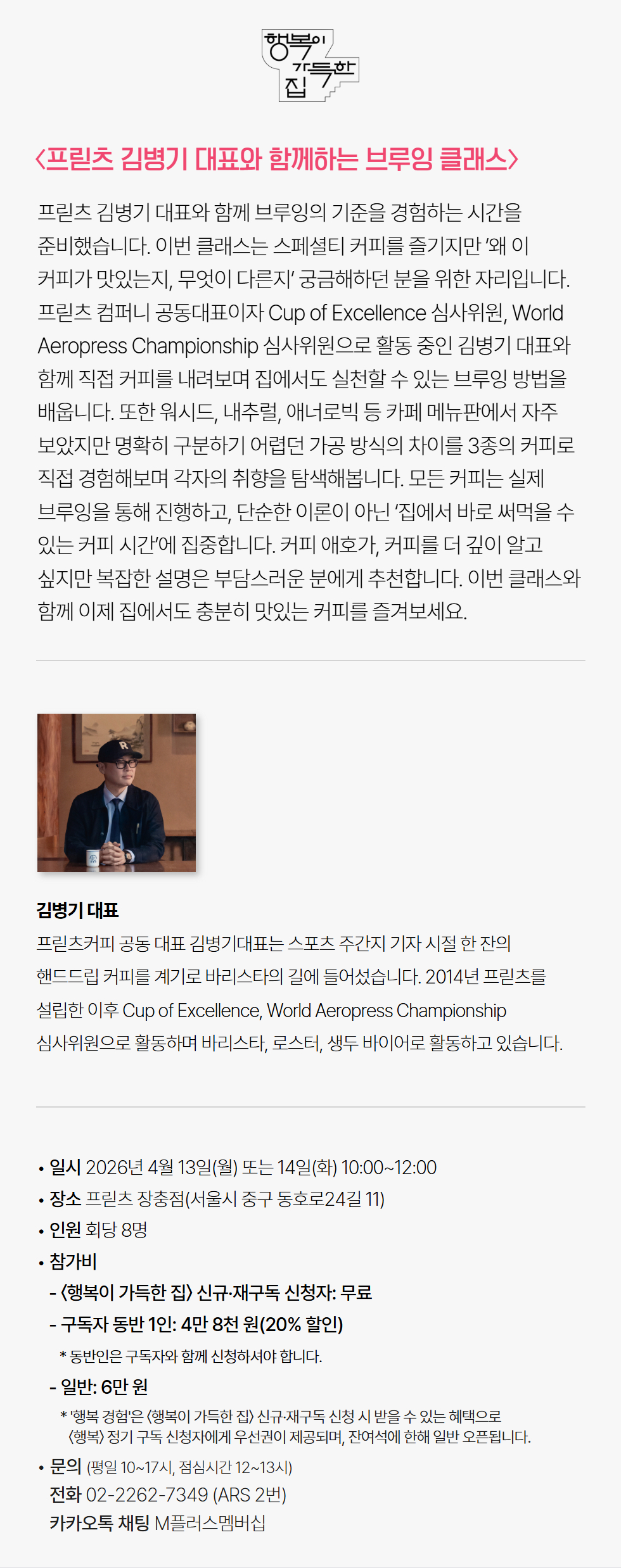 행복 경험: 프릳츠 김병기 대표와 함께하는 브루잉 클래스
