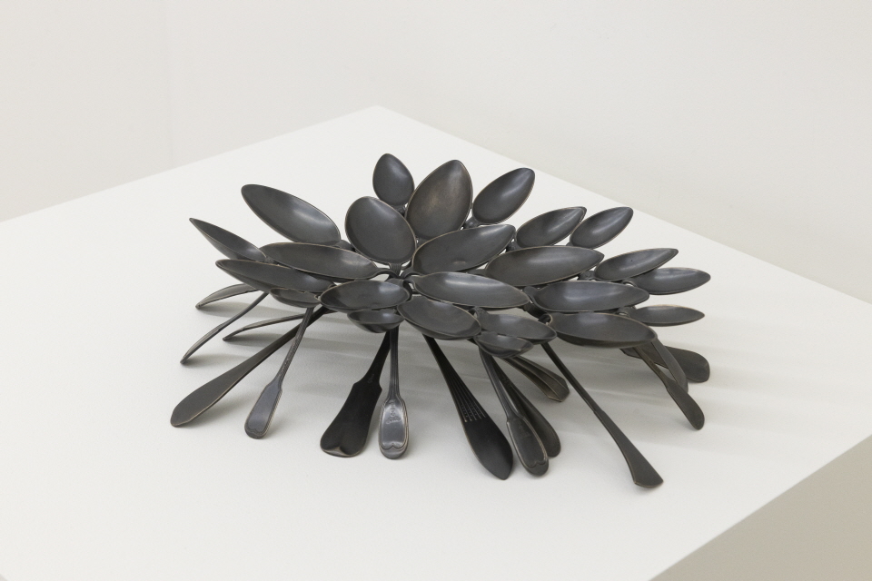 Shin Jakyung, Reunion black II, 2016. Used silver spoons, 27 x 38 x 11 cm