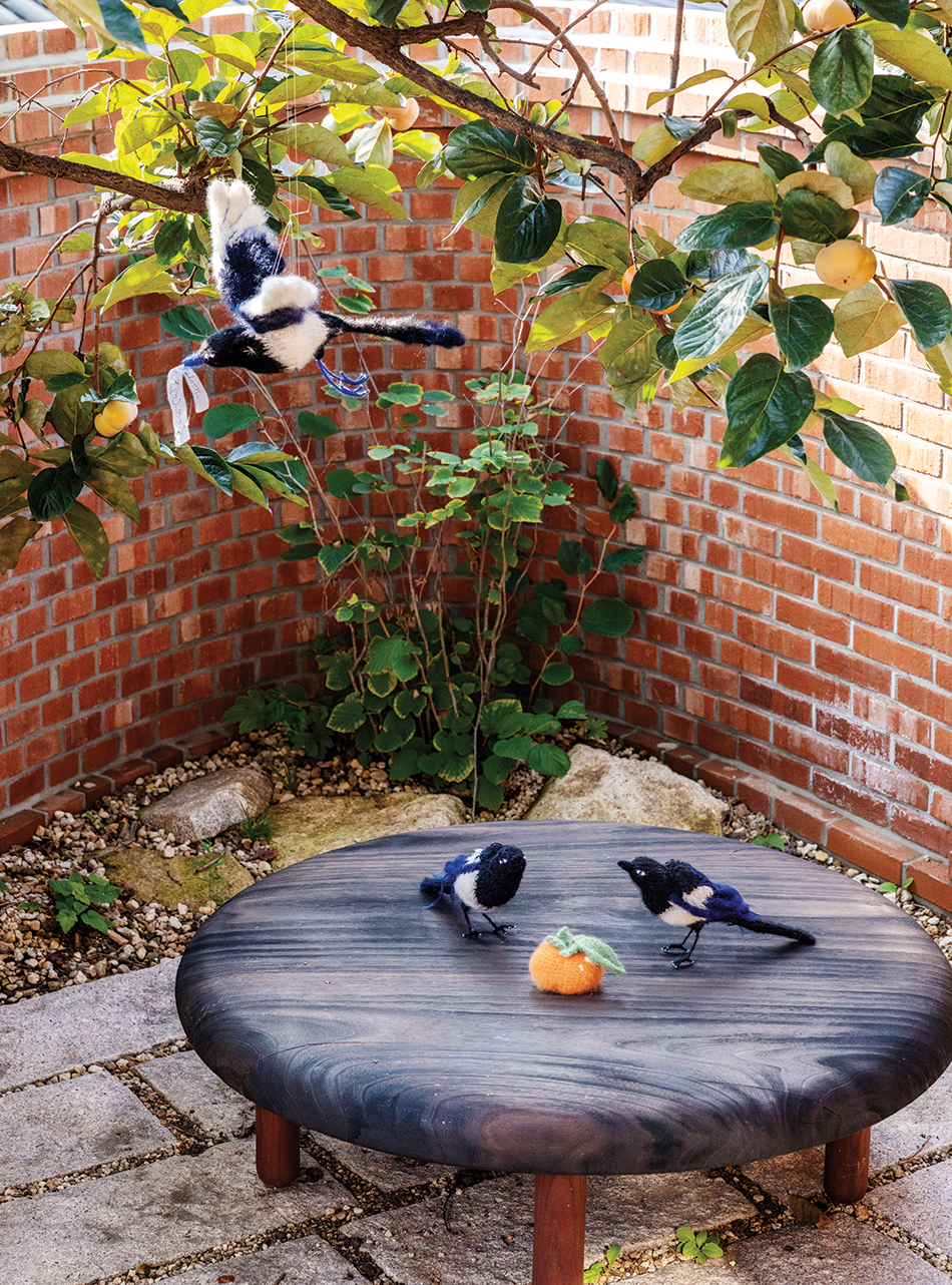 사라즈문 작가의 패브릭 작품을 배치해 길상의 상징인 까치가 날아든 듯한 연출을 완성했다.