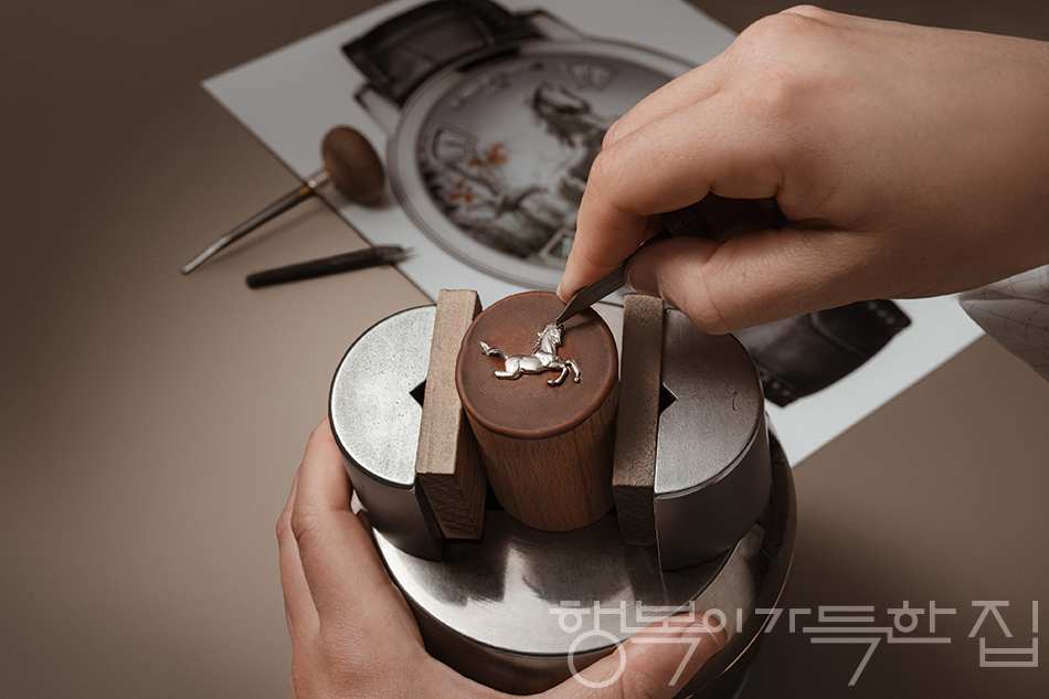 바쉐론 콘스탄틴이 말해를 기념하는 메티에 다르 레전드 오브 더 차이니즈 조디악을 출시한다. 이 모델은 매년 이어온 십이지신 테마의 연례 컬렉션으로, 올해는 말을 주인공으로 한 타임피스를 선보인다. 이번 모델의 다이얼은 나뭇잎과 자연 풍경을 섬세하게 인그레이빙한 뒤, 그 위에 컬러 에나멜을 여러 겹 입히는 수작업 공정을 거쳐 완성한다. 그 위에는 수공 양각 인그레이빙으로 제작한 말과 바위 모티프 아플리케를 더해 깊이감과 예술성을 한층 강조한다.