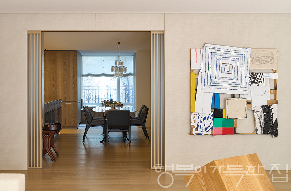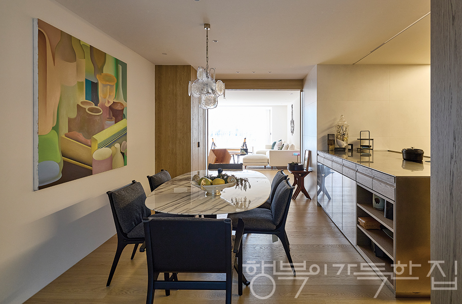 다이닝 테이블 옆으로는 노기쁨 작가의 페인팅을 걸었다.