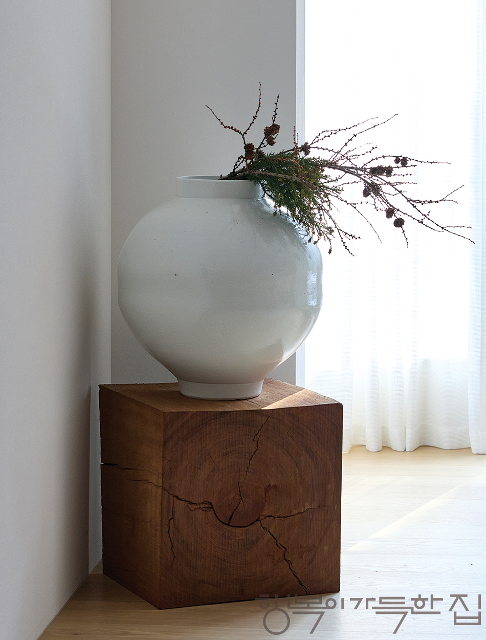 “사실 제가 많이 망설였어요. 이렇게 집을 공개하는 것이 제게 어떤 의미가 있을까 싶더라고요. 뾰족하게 꾸며놓은 좋은 집도 워낙 많잖아요. 저 스스로도 납득할 겸 우리 집 철학 서사를 한번 정리해봤어요. 챗GPT의 도움도 좀 받았고요.(웃음) 한번 읽어봐주세요.” 취재 현장에서 ‘우리 집 철학 서사’ 같은 리포트를 받은 것은 처음이었다. 파일첩에 담긴 종이를 쓱 훑어보니 장장 네 장이었다. 마지막 문단은 요약본으로 구성되어 있었는데, 괄호 안에는 이렇게 쓰여 있었다. ‘포인트 정리!’ 술잔을 들 일도, 밥 먹을 일도 많은 12월에 취재 일정을 잡으며 그녀의 바쁜 스케줄을 확인한 터라 더 놀랐다. ‘우리 집 철학 서사’에 담긴 내용을 살짝 소개해보자면 이렇다.