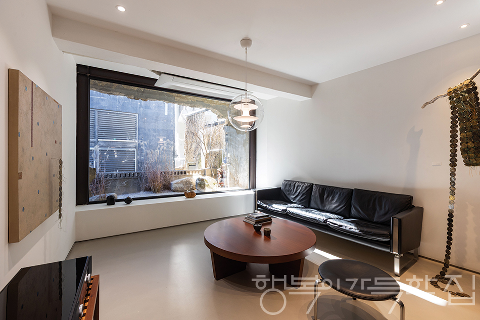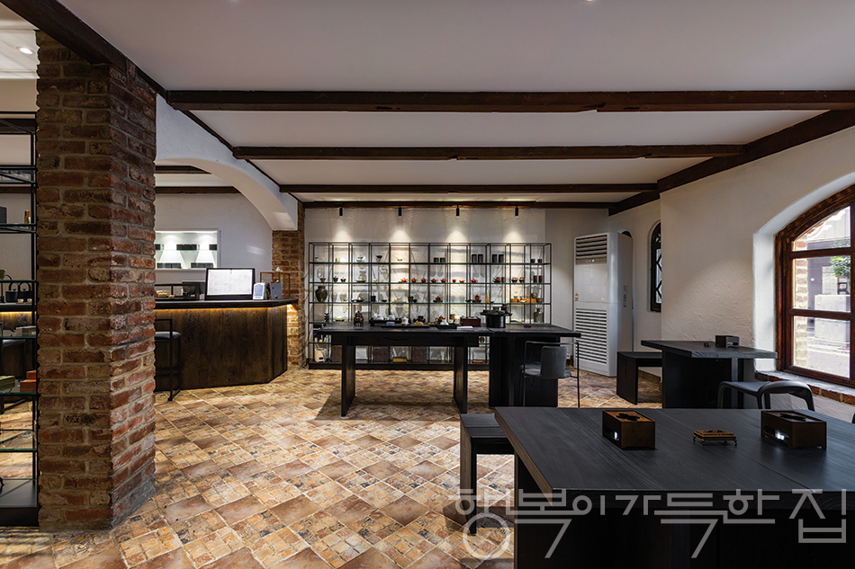 오래된 건물이 지닌 시간의 흔적을 그대로 살린 1층. 고요하게 자리 잡은 라운지에서 쉼의 시간을 갖는다.