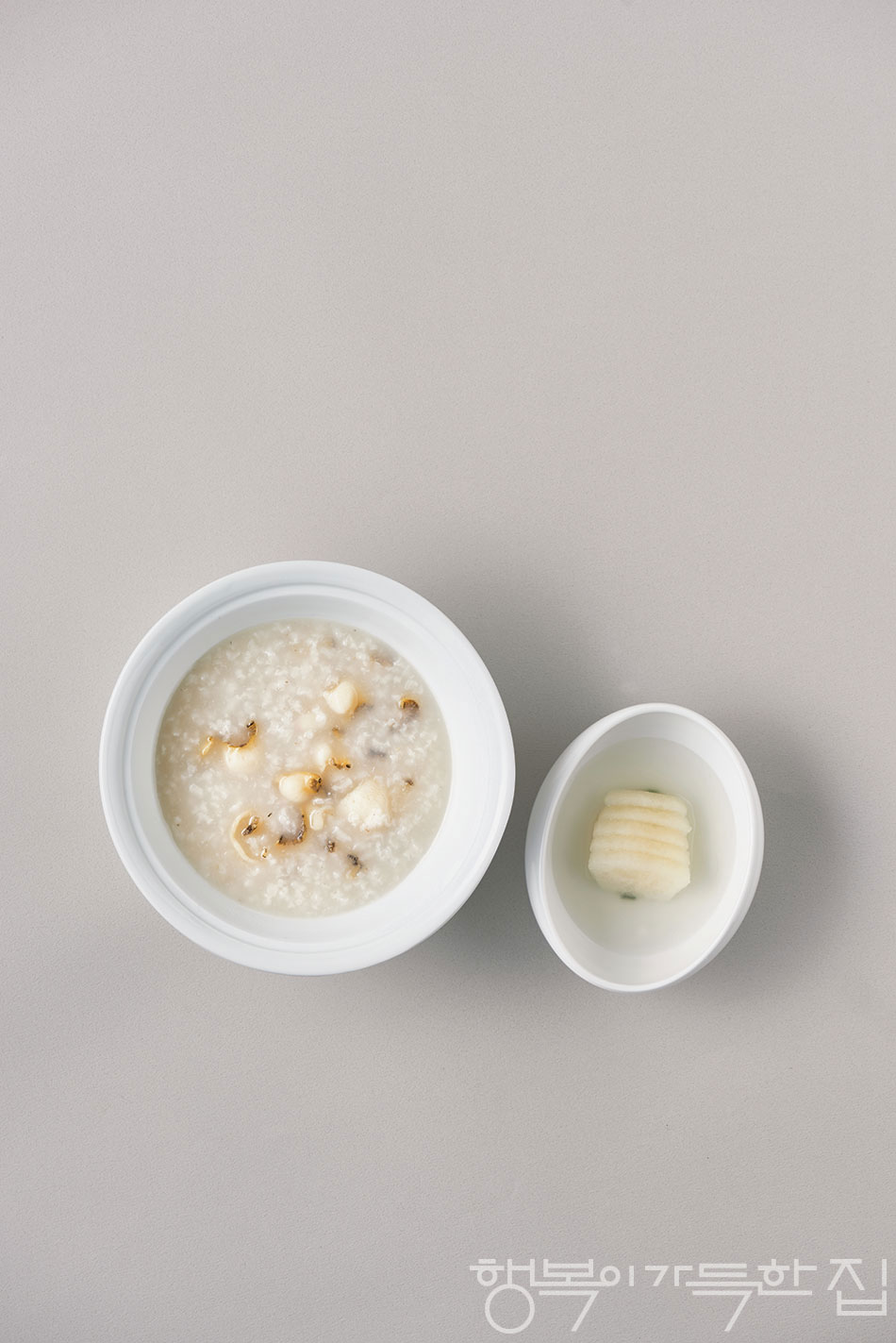 “도성의 천만 집이 모두 고요한데(萬戶千門盡寂然)/ 이따금 저 멀리서 들려오는 누군가의 말소리 (時聞人語在深邊)/ 부엌문 틈으로 등잔 불빛이 내비치니(燈光斜透廚扉隙)/ 술집에서는 새 술 거르고 죽집에서는 죽을 끓이네(酒肆新篘粥肆煎).” 서울 도성의 새벽을 읊은 조선의 문인 윤기(1741~1826)의 연작시 ‘성중효경城中曉景(성안의 새벽 풍경)’ 가운데 한 수다. 죽은 밥보다 먼저 생긴 곡물 조리법으로, 계급을 가리지 않고 즐기던 말 그대로 대중 음식이다. 임금의 첫 끼니로 초조반상에만 자주 오른 것이 아니라, 밤새 주린 서민의 배도 든든하게 채워준 고마운 음식인 것. 하지만 죽을 제대로 쑤는 데에는 시간과 정성, 불 조절의 기술까지 여간 공이 들어가는 것이 아니다. 이때 시판하는 흰쌀죽에 전복, 버섯 등 제철 재료를 더해보자. 입안이 깔깔하고 속이 허할 때 든든한 영양죽으로 더할 나위 없다.