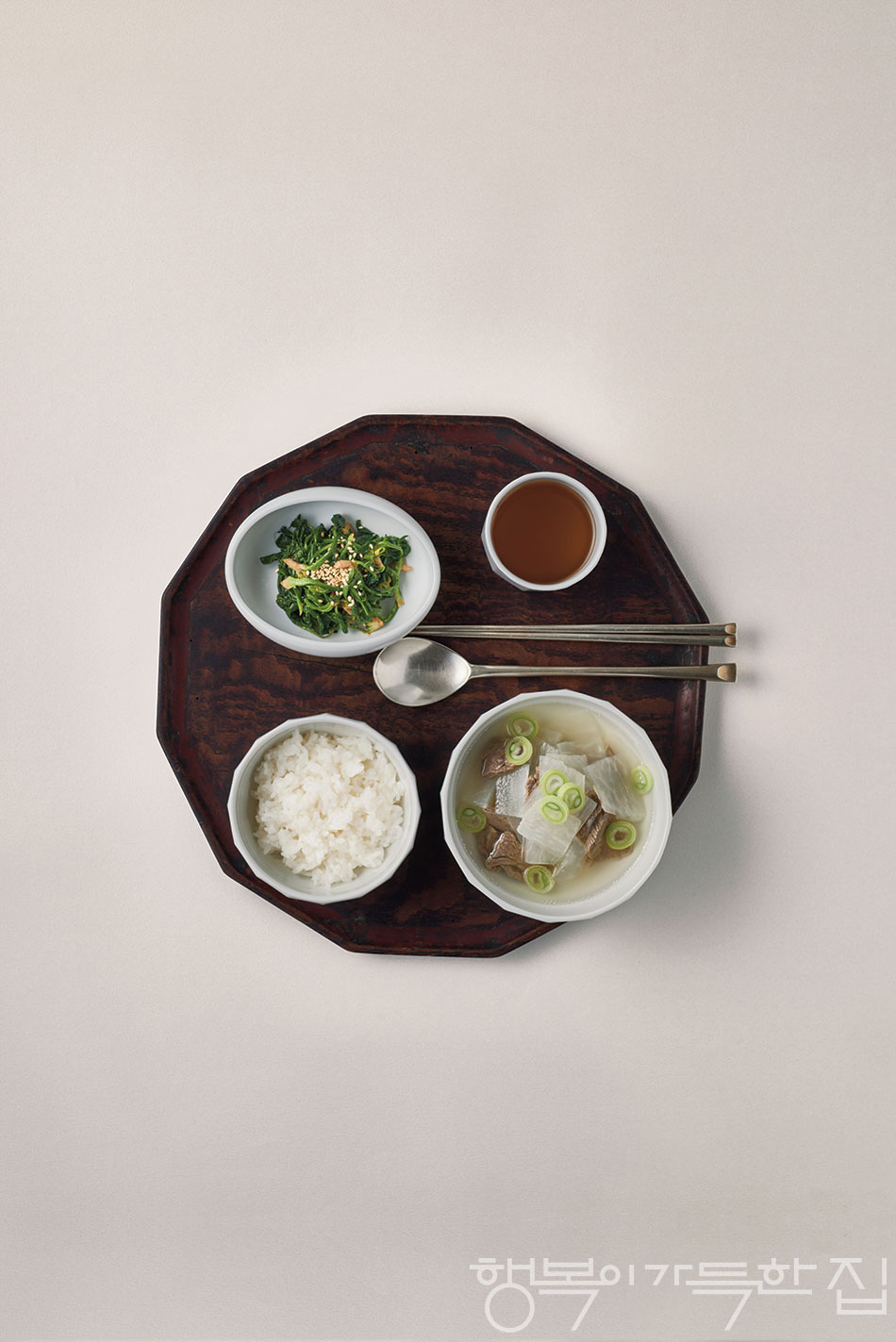 많은 한국인이 ‘한국 음식’ 하면 떠올리는 기본 밥상에는 김이 모락모락 나는 희고 기름진 쌀밥과 따끈한 국, 참기름·들기름으로 조물조물 무친 제철 나물이 공통적으로 자리한다. 한식의 기본이 되는 밍밍한 밥은 그 자체로 먹지 않고 반찬과 국물 요리를 곁들여 입안에서 맛을 완성하기 때문이다. 이때 고기 국물로 만든 국이라면 더없이 훌륭하다. 단출한 구성이지만 서로의 틈을 메우며 영양적 균형을 이뤄 흠 잡을 데가 없다. 시대가 아무리 변해도 한국인이 가장 좋아하는 식사는 어김없이 밥과 국 그리고 반찬으로, 그 자체가 완전한 상차림이다.
