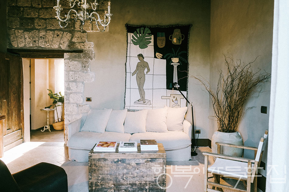 소렌토 전통 ‘컨트리 하우스’의 결을 살리되, 자신만의 터치를 더하는 것. 레베카는 건축이나 인테리어를 본격적으로 해본 경험은 없지만, 건축가를 고용하지 않았다. ‘진정성(authenticity)’에 자신만큼 집요하게 몰입할 건축가 및 디자이너를 찾기 어렵다고 판단했기 때문이다. 대신 현지 공급처와 장인들을 직접 연결해 네트워크를 만들었다. 건축가 대신 자신의 신념을 이해할 현지 장인들을 찾아 나선 셈이다. 여기에 파트너와 함께 여행에서 얻은 감각과 기억을 재료처럼 꺼내 공간에 적용했다. 남부 이탈리아의 앤티크 타일을 재활용해 완성한 주방, 철공 장인이 손수 만든 철제 디테일과 앤티크 스토브, 고재 복원 전문가인 목수가 되살린 오래된 문과 창문까지. “재사용한 자재들은 집에 시간을 입혀주었어요. 공사가 진행되면서 공간은 자연스럽게 제 갈 길을 찾아갔죠.”