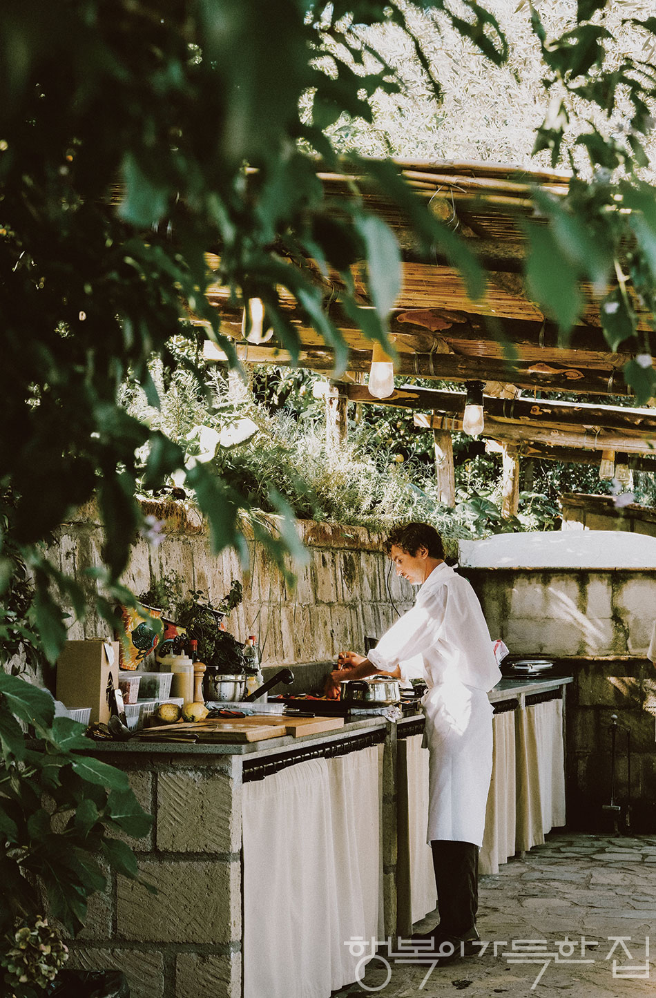 마당에서 수확한 식재료를 담아내는 장면만으로도 게스트에게는 충분한 치유의 순간이 된다.