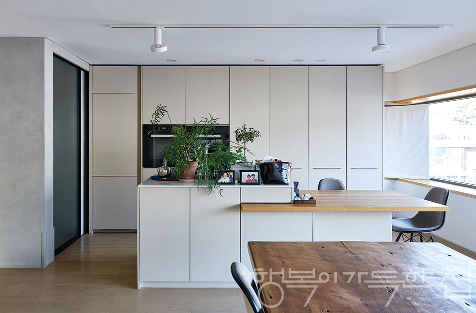 단정한 레이아웃으로 디자인한 주방. 인테리어가 필요할 때마다 함께 하는 든든한 지원군 김숙영, 임미나 대표가 있어 이번 집도 수월하게 작업할 수 있었다.