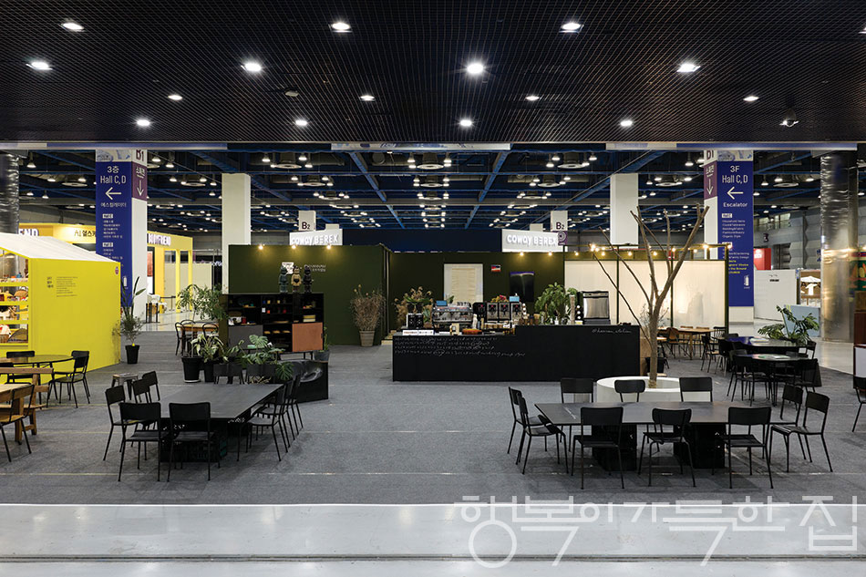 관람객이 파도처럼 쉴 새 없이 밀려오는 서울리빙디자인페어 전시장 길목에 마을이 하나 들어섰다. 김민지·김예진·김주암·박근하·양유완·최희승 인플루언서 6인의 취향이 담긴 집과 제철 식재료로 꾸린 오뚜기의 팜 키친, 카페 한남작업실이 모여 탄생한 <행복> 빌리지. 그 가옥들 사이로 도란도란 피어나온 마을의 풍경들.