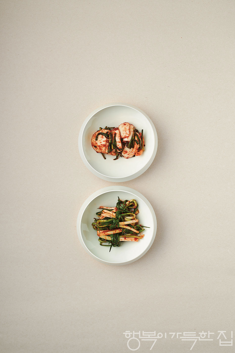 11~12월에 1년 밥상을 책임지는 김장을 하지만, 그 전까지는 봄·여름·가을마다 제철에 나는 채소로 계절 김치를 부지런히 담가 먹는다. 이즈음엔 햇양파와 쪽파로 담근 김치가 대표적이다. 햇양파김치는 4~5월에 전남 무안 지역에서 나는 양파가 단단하고 야물어서 제격이다. 맵싸한 맛이 일품인 쪽파김치는 멸치 액젓을 넣어 감칠맛을 한층 돋우고, 다진 마늘로 향을 낸다. 같은 양념으로 만들어도 맛있지만, 손쉽게 맛을 내고 싶다면 겉절이 용도의 시판 간편 양념을 활용해도 좋다. 모두 숙성시키지 않고 바로 먹어도 맛있으며, 특히 고기 요리에 곁들이면 안성맞춤이다.