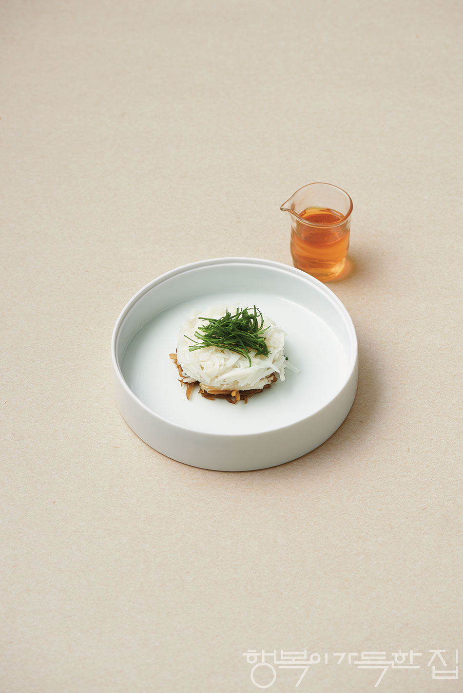 ④ ③의 칼국수와 팽이버섯은 그룻에 담은 후 ②의 채 썬 대파를 올린다.